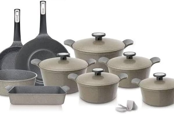 عزز تجربة الطهي الخاصة بك مع مجموعة أواني الطهي المصنوعة من الألومنيوم المصبوب والمكونة من 14 قطعة. تجمع أواني الطهي عالية الجودة هذه بين المتانة وتوزيع الحرارة بكفاءة والتصميم الأنيق، مما يجعلها إضافة مثالية لأي مطبخ. حقق نتائج طهي مثالية بفضل توزيع الحرارة السريع والمتساوي واستمتع بالطهي الصحي بفضل طلائها الداخلي غير اللاصق.