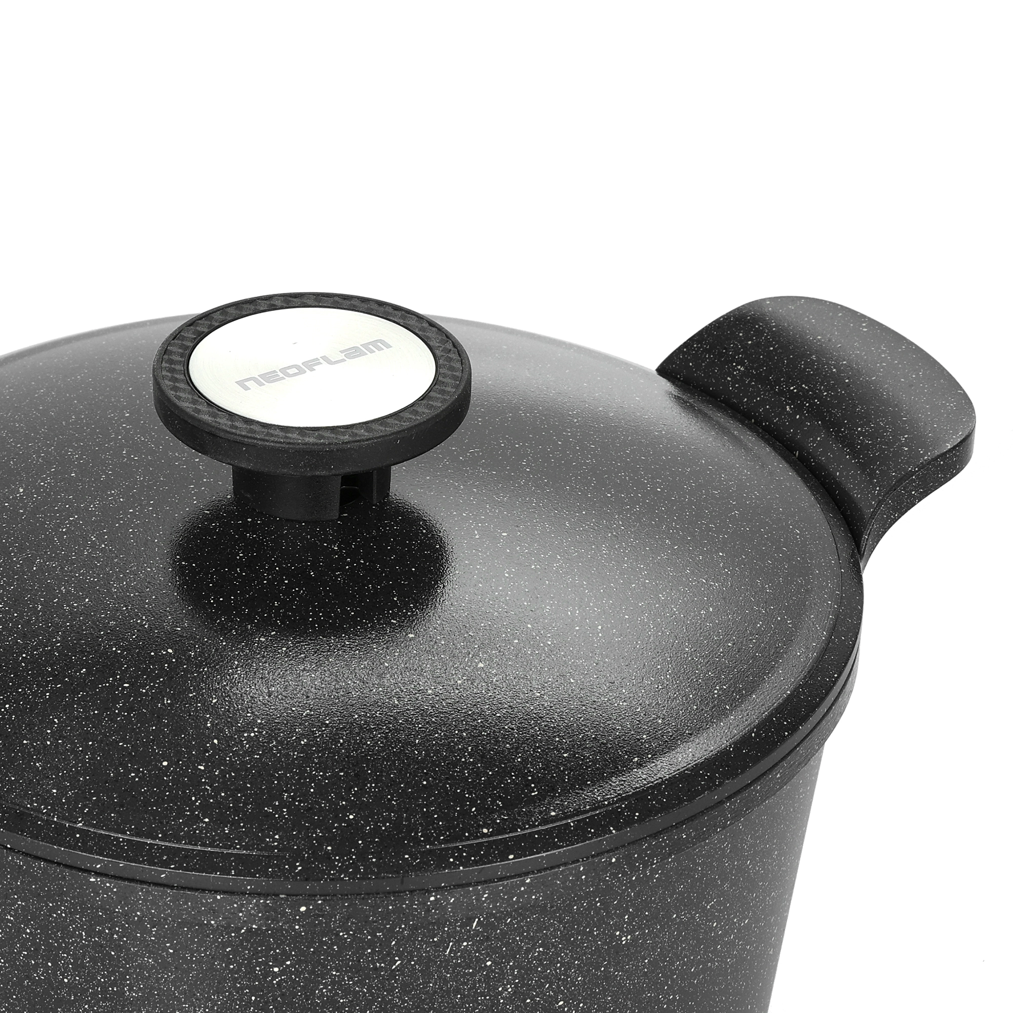 طقم نيوفلام الحل الامثل لمطبخك مصنوع من خامة الجرانيت القوية والسطح غير اللاصق، مما يمنحك تجربة طهي استثنائية مع الحفاظ على جودة الطعام وقيمته الغذائية و تمنحك توزيع درجة حرارة متساوية , طلاء غير لاصق يسهل التنظيف و يوفر طهي صحي لأسرتك .