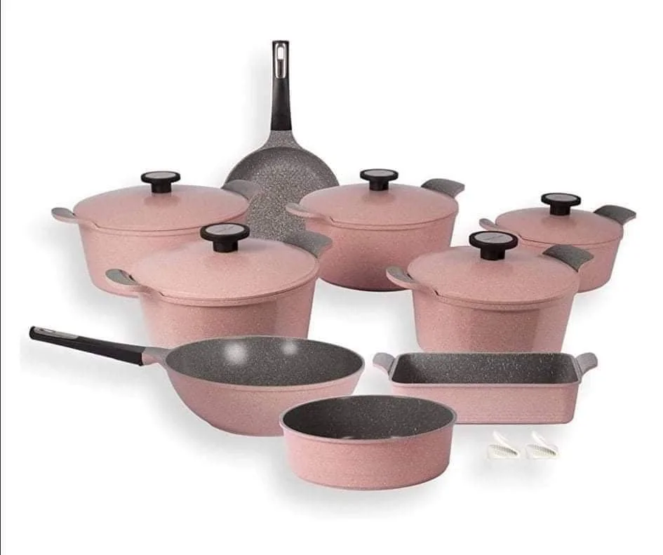 طقم أواني طهي أرشيا المصنوع من الألماس المصبوب 12 قطعة روز
